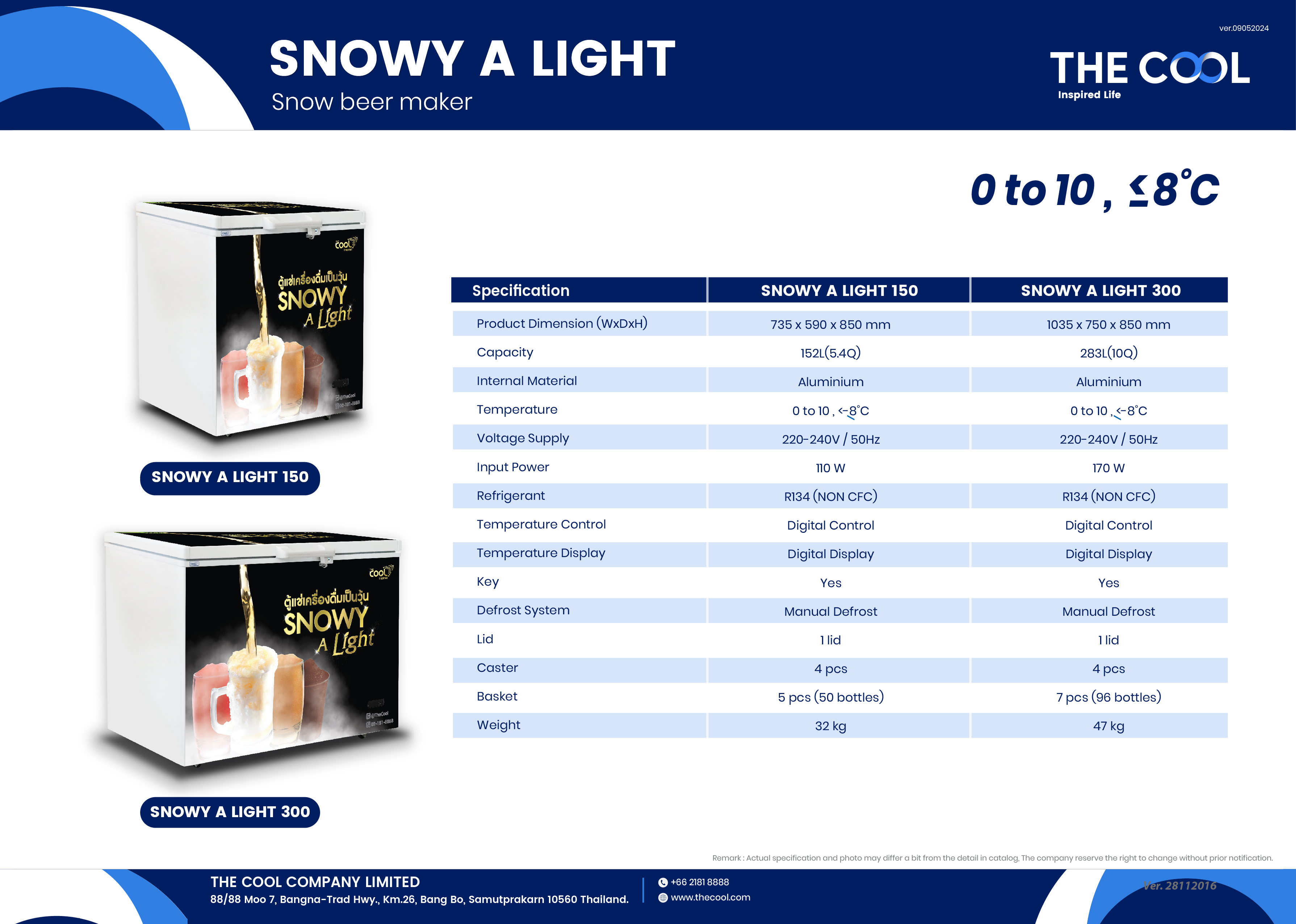 ตู้แช่เครื่องดื่มเป็นวุ้น รุ่น Snowy A Light 300 ความจุ 10.6 คิว